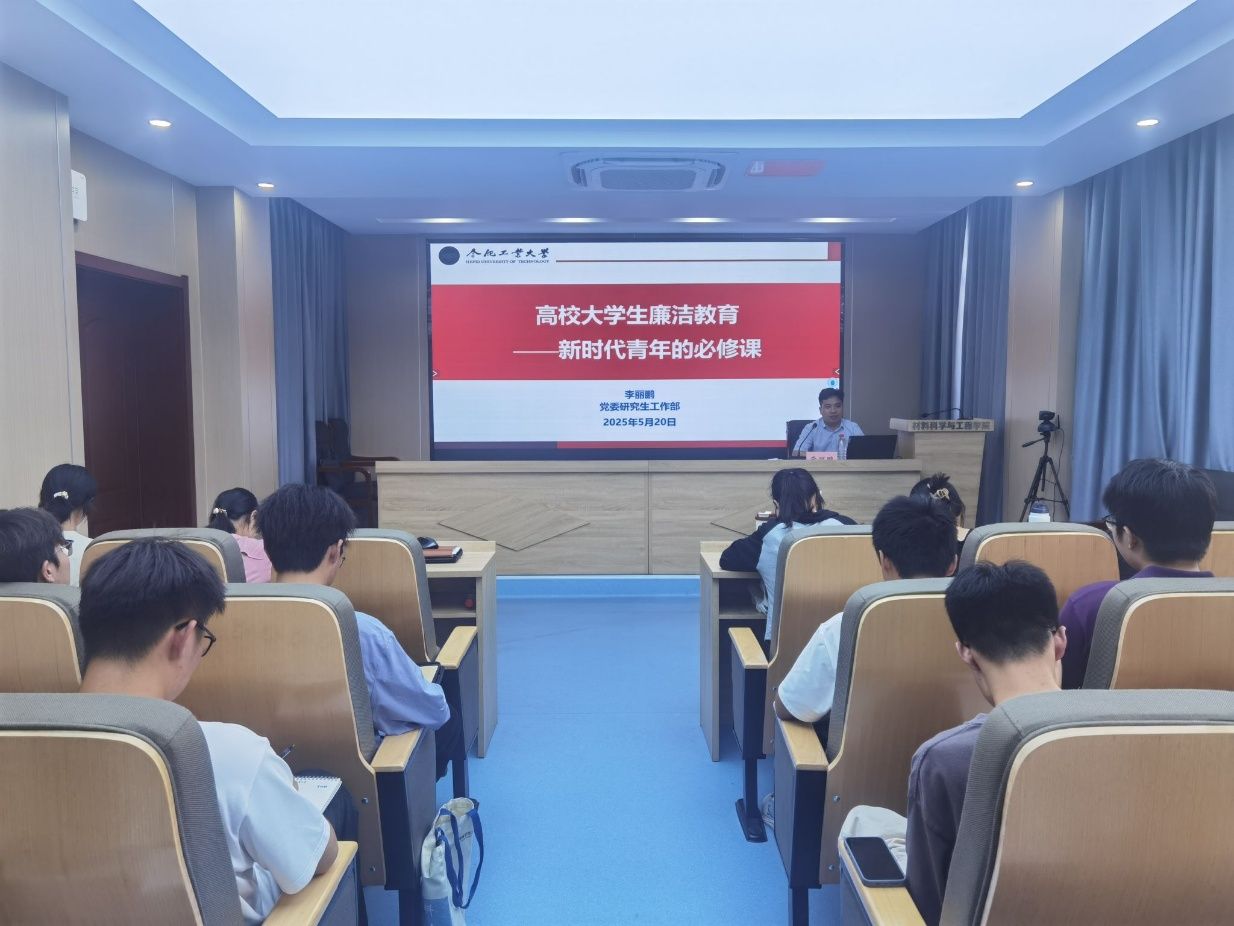 5月20日下午,九游体育官网在屯溪路校区材料楼601报告厅举办大学生廉洁教育专题党课。党委研究生工作部部长李丽鹏应邀授课。学院全国“样板支部”学生代表、党校第73期学员班学生代表等70余人参加本次党课。