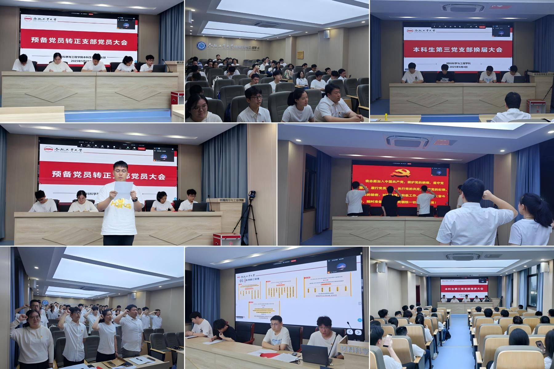 6月4日晚,九游体育官网本科生第三党支部于屯溪路校区材料楼601召开了2025年上半年预备党员转正暨支委改选大会。支部全体党员50余人参会。
