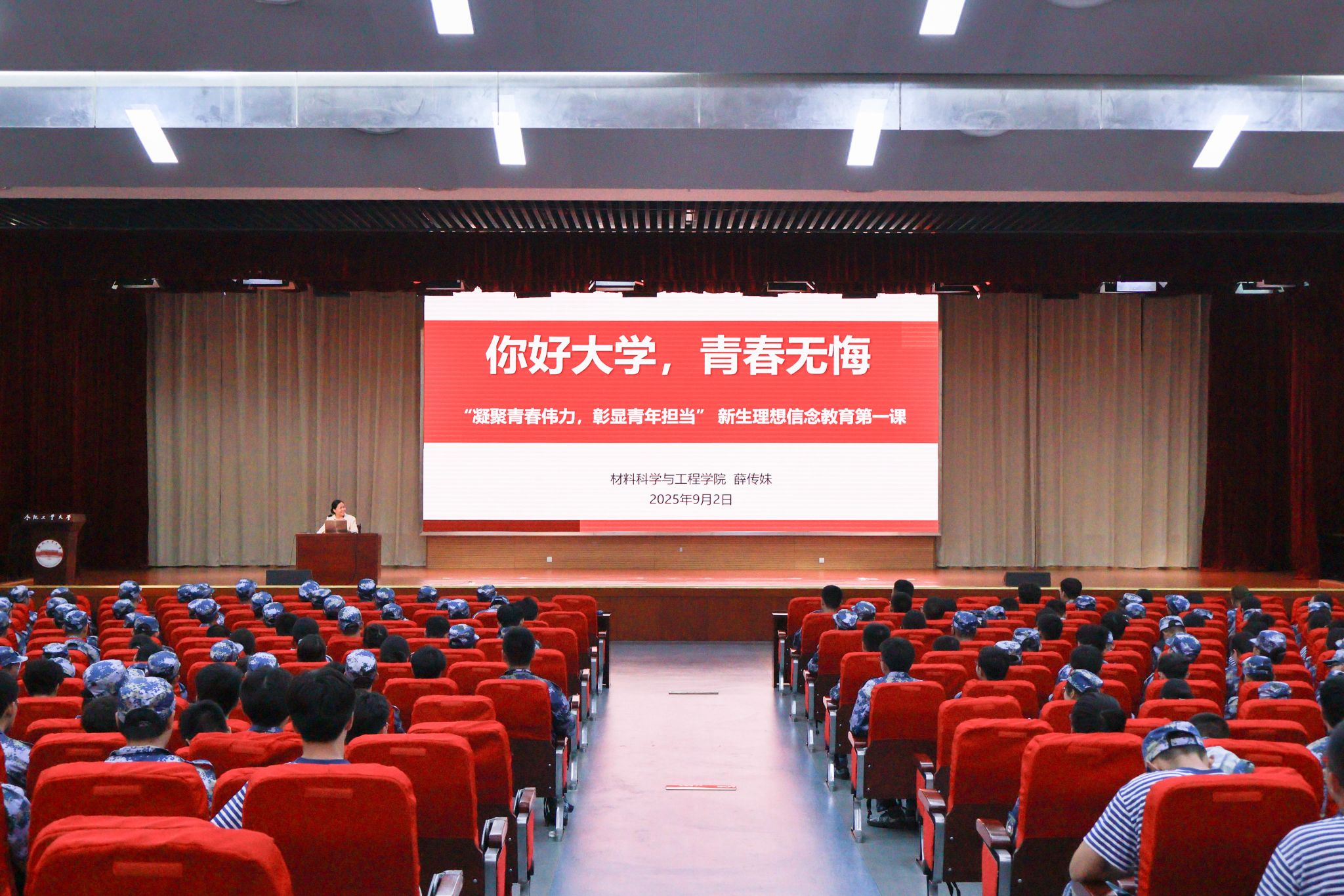 9月2日晚,九游体育官网在翡翠湖校区翡翠科教楼二楼报告厅举办“凝聚青春伟力,彰显青年担当”新生理想信念教育“第一课”。学院相关负责人、2025级全体新生参加本次活动。