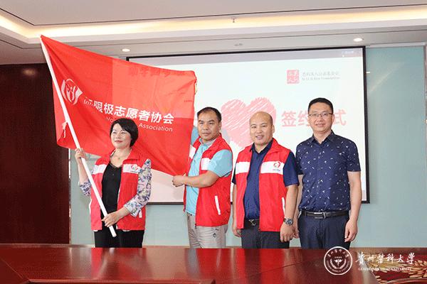 战勇和唐永红共同为“梦想邀请函”揭幕,“梦想邀请函”是由无限极(中国)有限公司、思利及人公益基金会、合作院校三方联合发出的,邀请符合招生标准的学生群体报考助学圆梦项目的信函。这是首次发布“梦想邀请函”,旨在邀请贵州各地家庭困难的学子了解并参加该项目,让更多有需求的青少年们获得圆梦的机会。杨毅为志愿者关怀小组代表授旗。