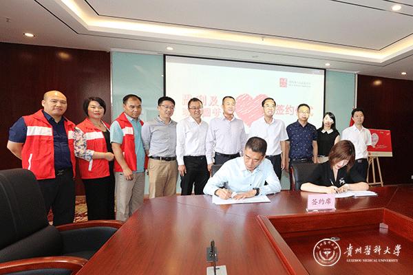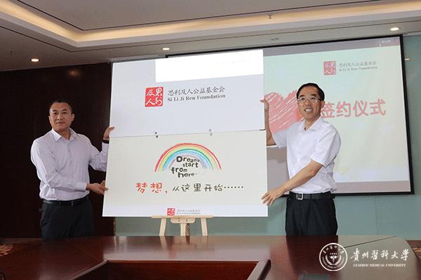 在与会领导和来宾的见证下,贲琛代表学校与无限极(中国)有限公司德振签订了“思利及人助学圆梦班”捐资助学协议书。