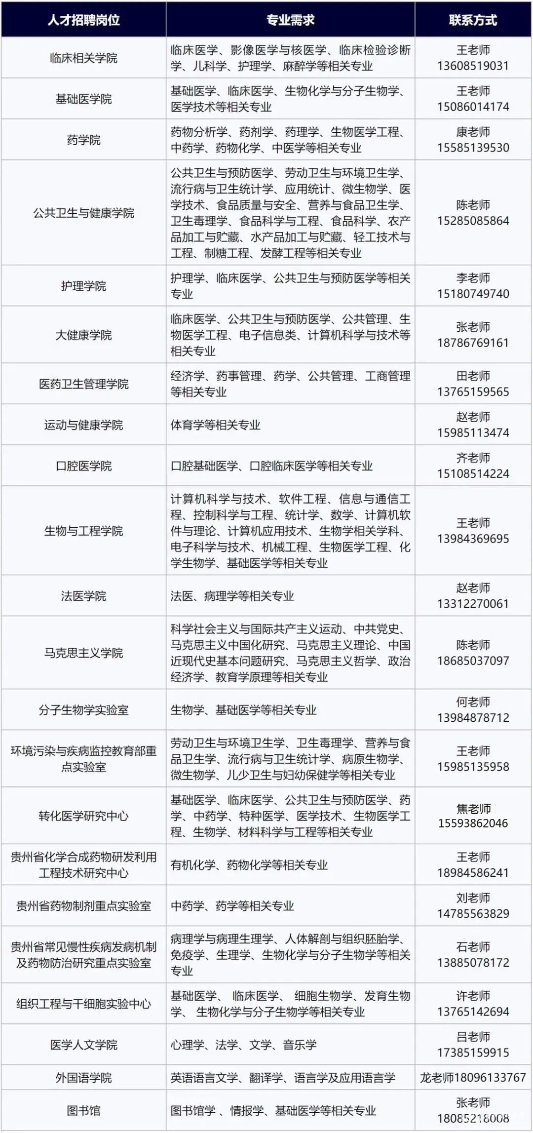 五、联系方式应聘者请将个人简历发送至学校人事处招聘邮箱:rencai@gmc.edu.cn、rencai_gyzp@163.com (投递简历邮件标题:应聘岗位名称+姓名+学历+专业+中国博士人才网)联系人: