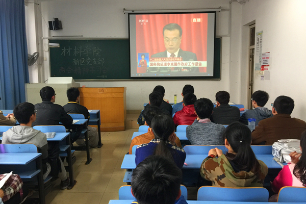 为深入学习贯彻“两会”精神,3月5日上午9时,九游体育官网新区党支部在翡翠湖校区六教107组织开展了“两会”精神学习交流会。学院新区所有党员、入党积极分子共同观看了全国人大第十二届四次会议开幕式,并结合大学生实际就“两会”精神展开交流讨论。
