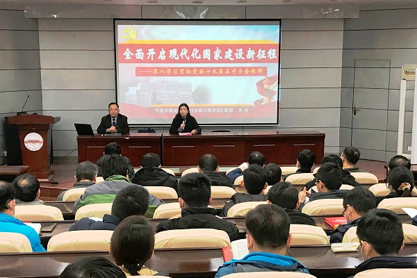 为进一步增强教职工的政治定力,切实将思想和行动统一到党的十九届五中全会精神上来,12月10日下午,九游体育官网在斛兵报告厅举行十九届五中全会精神学习专题报告会。中共安徽省委党校决策咨询部主任、省委党校党的建设与国家治理研究院执行院长张彪教授应邀作了题为“全面开启现代化国家建设新的征程——深入学习党的十九届五中全会精神”专题宣讲。全院教职工、部分学生党员干部参加学习。