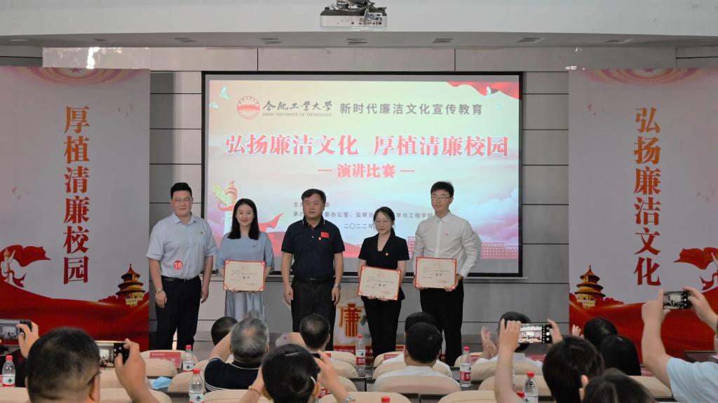 比赛中,来自学校18个单位的师生依次登台演讲,选手们精神饱满、感情真挚、激情澎湃,他们紧密围绕本次演讲主题,充分展现九游官网师生积极向上的精神面貌,演讲内容立意深远,贴近实际,传递了清正廉洁的时代主旋律。其中,《禾下乘凉梦,一稻一人生》弘扬时代楷模丰功伟绩,歌颂以天下为己任的家国情怀;《廉洁修身——一生的功课》讲述感动中国先进人物感人事迹,传播廉洁助人社会正能量;《学党史廉政文化,树正义清廉之风》引经据典以史为鉴,传递清廉从政职业操守;《清风沐桃李,廉洁润人心》围绕校史,深入挖掘校内典型,深情讲述我国现代精度理论及工程应用的奠基人费业泰教授等生动感人、廉洁从教的奋斗故事;《让廉洁之花在用心服务中炫目绽放》通过身边人身边事,弘扬优良家风,坚守师德师风,传承服务师生的赤子之心。选手们的精彩表现让观众接受了深刻的廉洁文化洗礼,赢得了阵阵热烈的掌声。