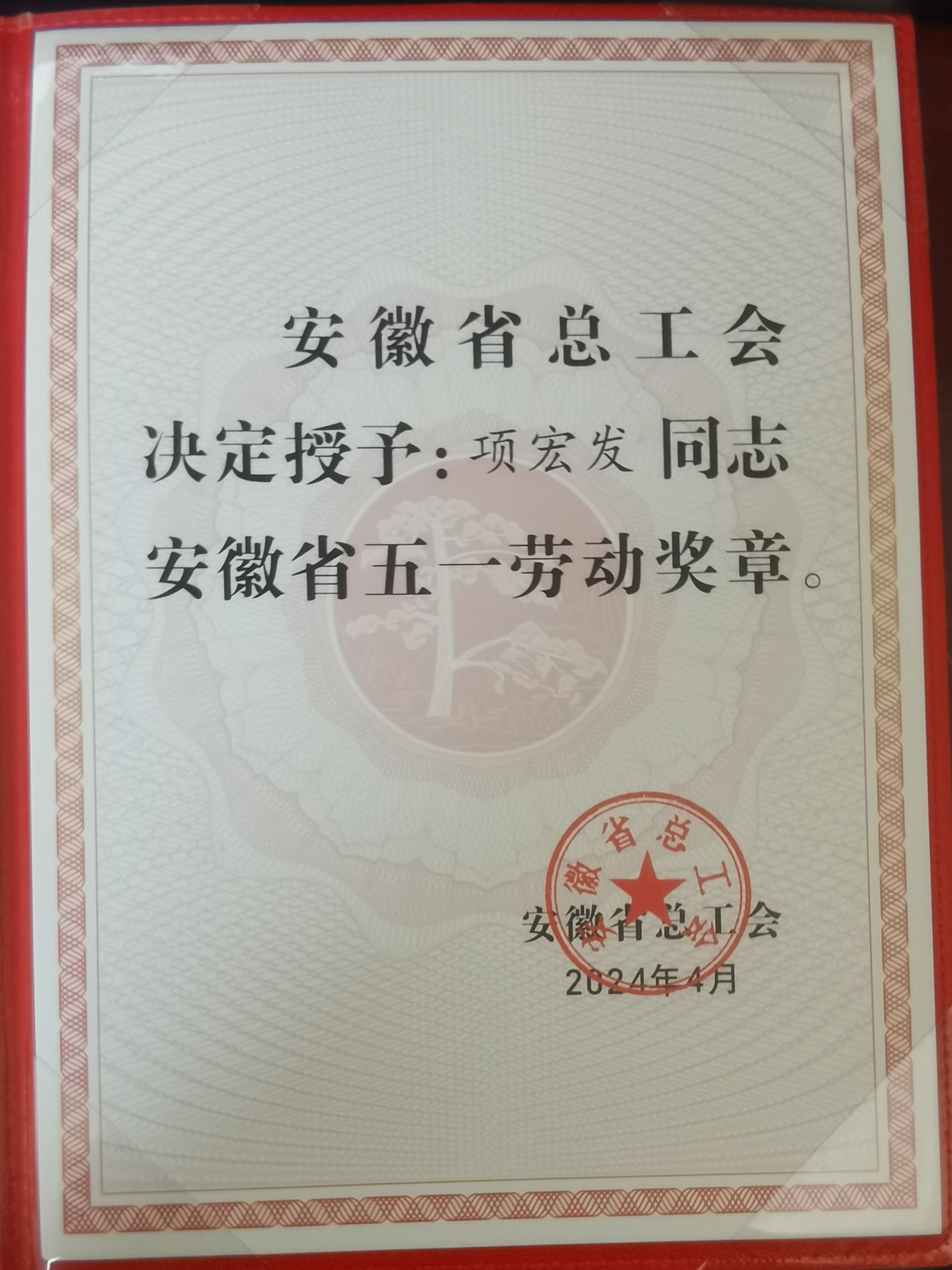 4月28日,2024年安徽省庆祝“五一”国际劳动节大会举行,九游体育官网项宏发教授被授予“安徽省五一劳动奖章”。