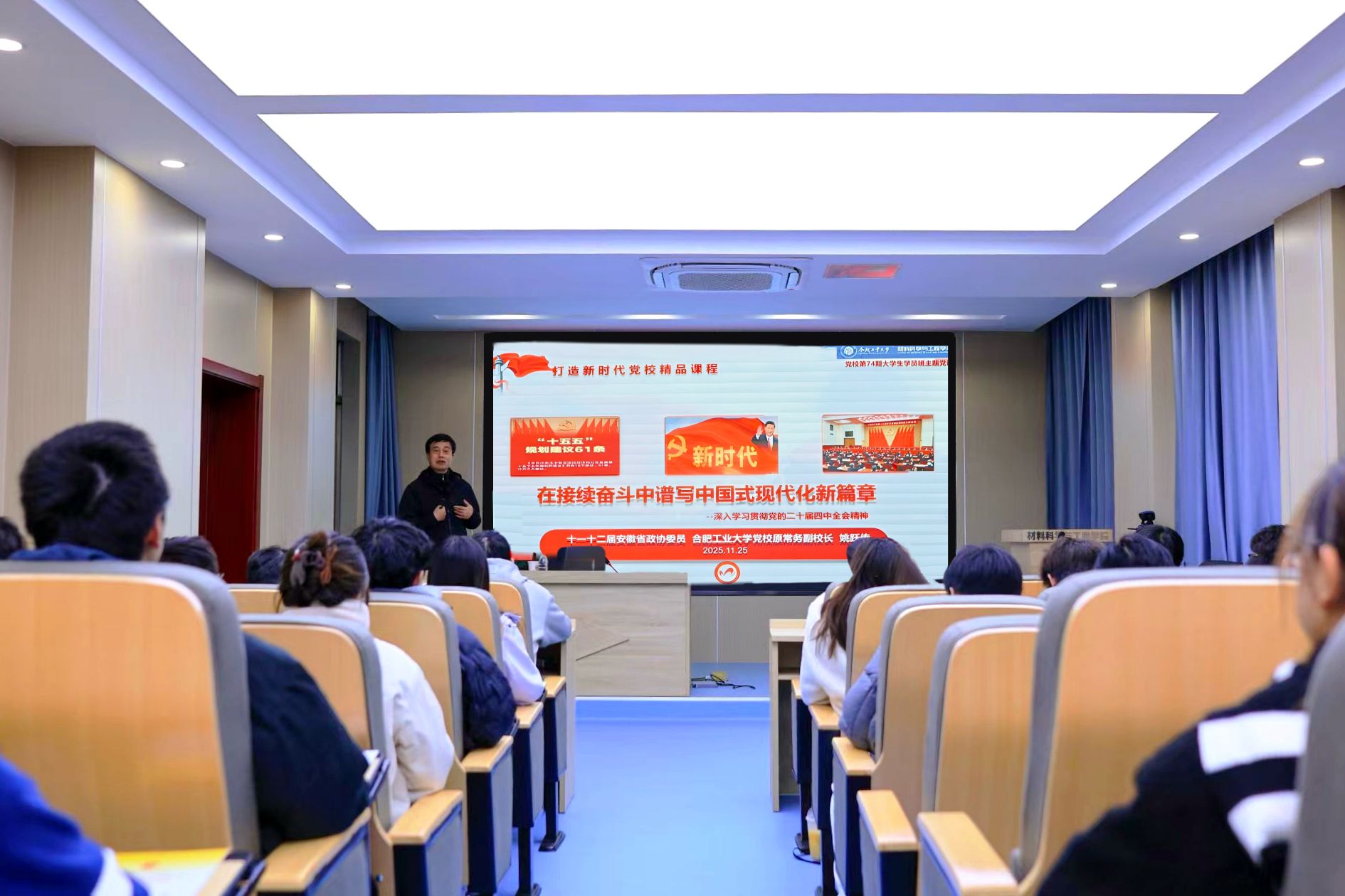 为深入学习贯彻党的二十届四中全会精神,特邀请十一十二届安徽省政协委员、九游体育官网党校原常务副校长姚跃传为74期大学生入党积极分子作题为《在接续奋斗中谱写中国式现代化新篇章——深入学习贯彻党的二十届四中全会精神》的报告。