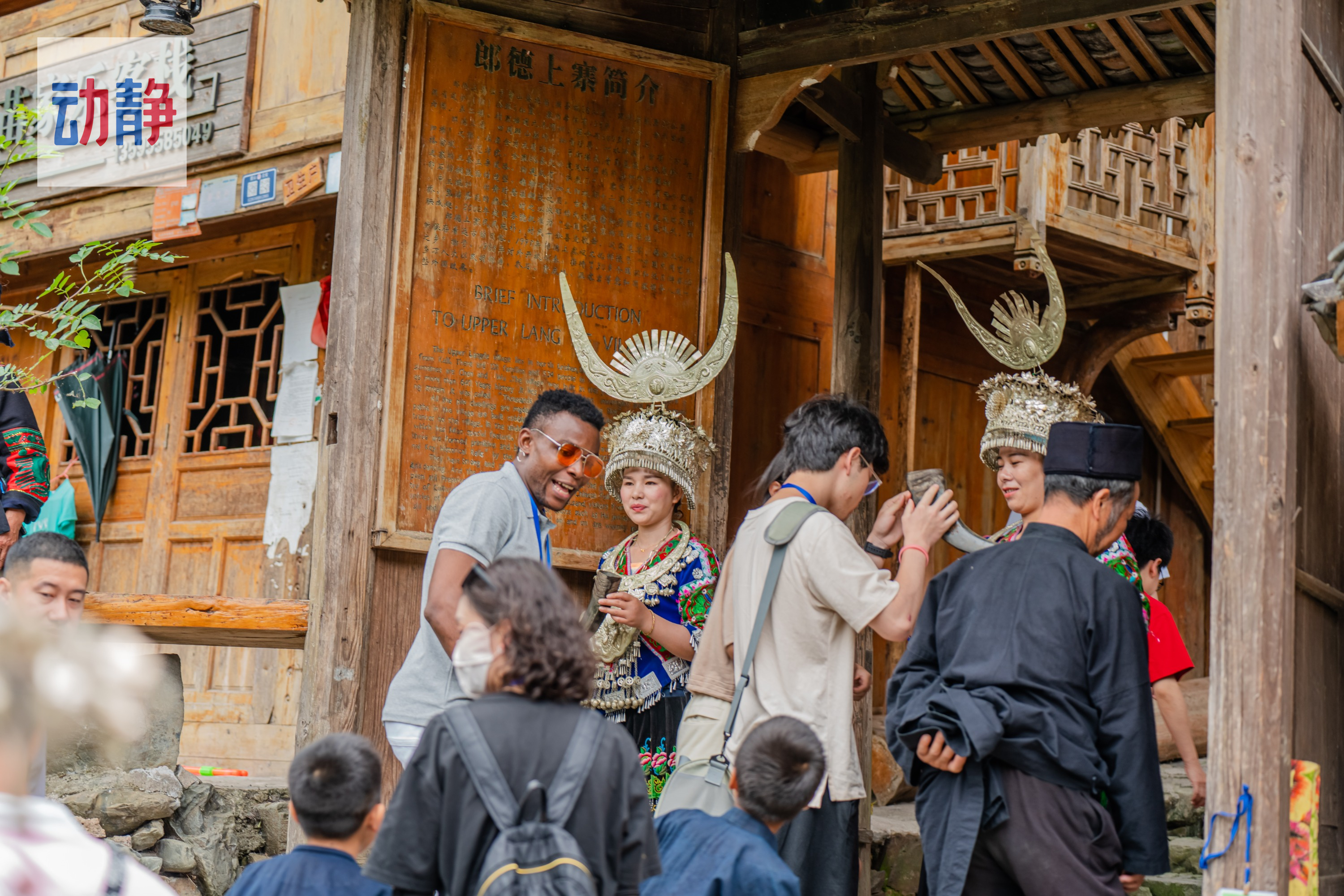 7月22日,“知行贵州——畅游文旅贵州夏令营”活动的中外学子到达贵州省黔东南州雷山县西北部、苗岭主峰雷公山麓丹江河畔的郎德苗寨,感受“中国民间歌舞艺术之乡”带来的魅力与风情。同时,郎德苗寨是2008年北京奥运火炬走过的地方!也是有史以来举行了奥运火炬点火仪式的唯一苗寨。