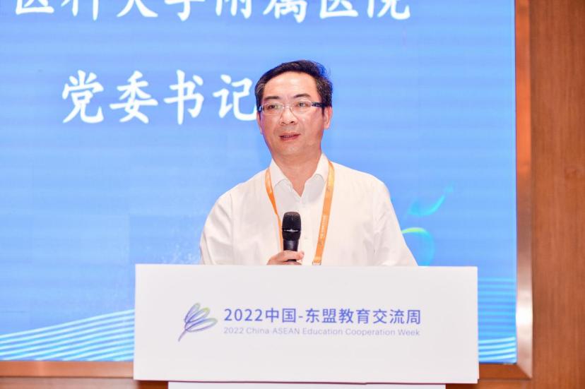 李海洋书记致欢迎辞,此次会议不仅是贵州医学影像与基础医学融合的一次重要会议,也是中国—东盟国家区域内医学影像学与基础医学融合的交流与合作承前启后的一次盛会,为拓宽合作范围、深化合作领域及共迎发展机遇搭建了良好的交流与合作平台。