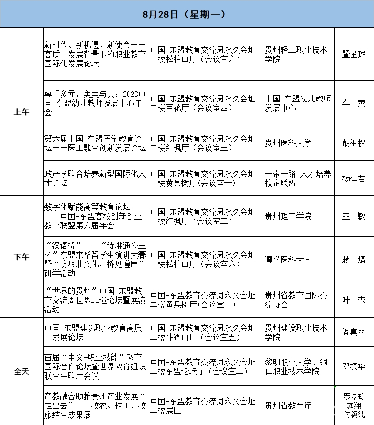 2023中国-东盟教育交流周开幕期活动日程安排(永久会址·线上+线下)