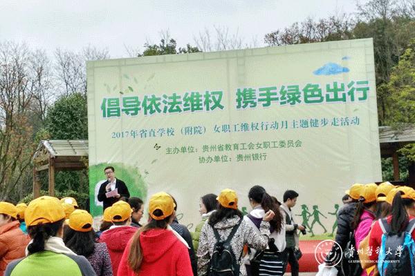 3月24日,由省教育工会组织的“倡导依法维权 携手绿色出行——2017年省直学校(附院)女职工维权行动月主题健步走活动”在观山湖公园举行,beat365工会组织30余名女教师参加活动。
