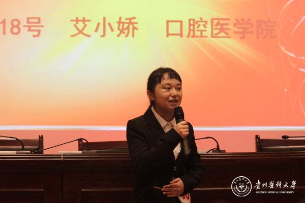 此次比赛分为命题演讲和即兴演讲两个环节。比赛中,各位选手从围绕对总书记重要讲话精神的认识与体会,讲述我与共青团的故事,宣传团的光荣历史和共青团先进典型等方面进行演讲,他们引经据典、慷慨激昂,传递出团员青年的骄傲和青春正能量。尤其是即兴演讲环节,彰显了贵医学子坚定理想信念,不忘初心跟党走,朝气磅礴的精神面貌。校党委宣传部副部长吴祥文对本次比赛做了点评。经过激烈角逐,艾小娇(口腔医学院)荣获一等奖,郭雪(基础医学院2015级)、胡文(麻醉学院)荣获二等奖,罗文(医药卫生管理学院)、徐菁(护理学院)、范钦萍(公共卫生学院)荣获三等奖,其余选手荣获优秀奖。