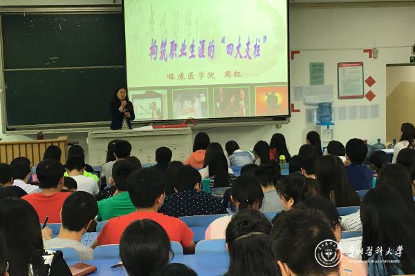 临床医学院于4月20日在1301教室开展了临床医学2017届毕业季校园主题系列活动。活动包括以“师生交流、传经送宝”为主题的促就业分享会及以“感悟青春、感恩母校”的文明离校活动。会议由临床医学院学生科科长李莉主持,临床医学院党委书记周红,临床医学院党委副书记杨婕,临床医学院学生科、2012级全体辅导员及2017届毕业生参加。