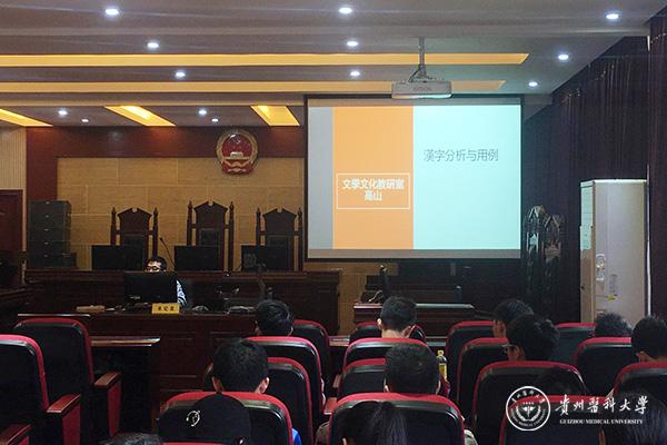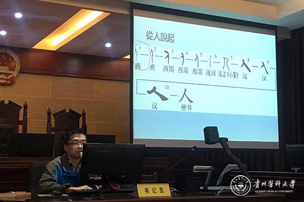高老师从为什么要学汉字开始讲解,以汉字中的“人”字为例,从人的构造,人的部分等方面为大家依次介绍,并结合我们所学到的医学知识为在场的同学详细讲解。高山现场回答了同学们的提问