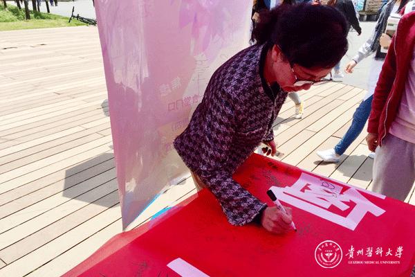 活动开始,药学院学生会成员积极组织,大力宣传,耐心讲解活动主题内容,吸引了一大批在校学生参与签名活动。席晓岚、各级辅导员在横幅上留下签名。席晓岚指出,本次活动具有十分积极的意义,宣传了心理健康知识,呼吁大家正视心理疾病,希望各位同学在此活动中都有所获。
