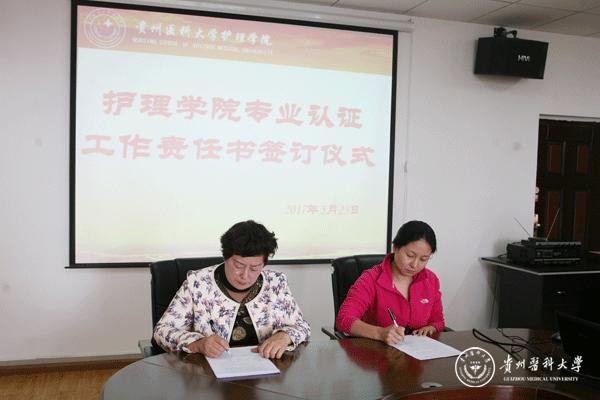 贾秀英代表护理学院党政班子与各职能科室、教研室、实验室负责人分别签订了“专业认证工作责任书”。
