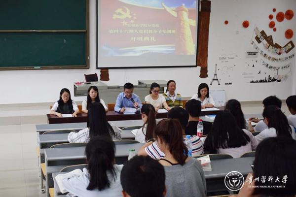 6月14日,基础医学院分党校第四十六期入党积极分子培训班开班典礼在九思楼105教室召开。基础医学院党委书记徐国强、临床医学院2016级党支部书记罗恒、临床医学2015级党支部书记洪潇潇、刘慧及120多名学员参加。