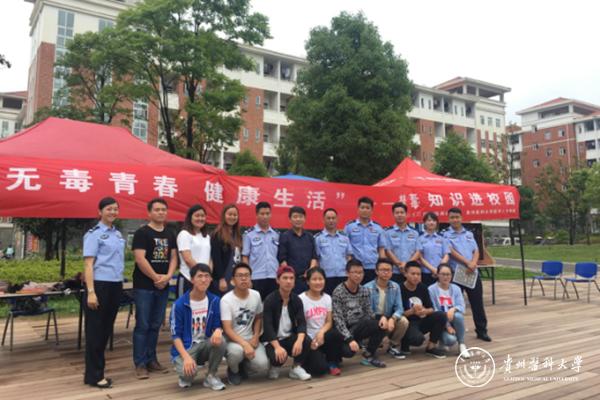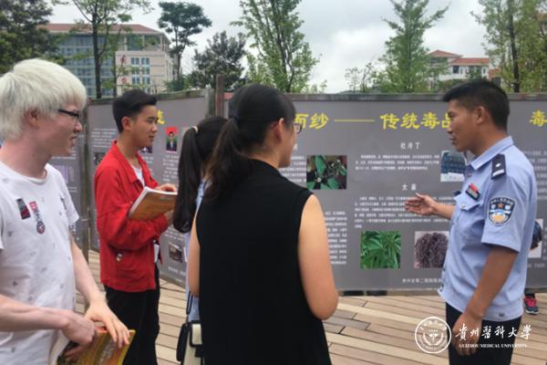 为加强在校学生对新型毒品的了解,6月22日,医学人文学院携手贵阳市第二强制戒毒所在第三十个国际禁毒日到来之际,在南校区一食堂门口举办“无毒青春 健康生活”禁毒知识进校园活动。