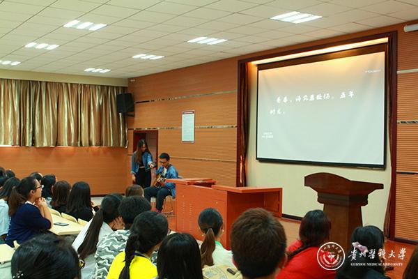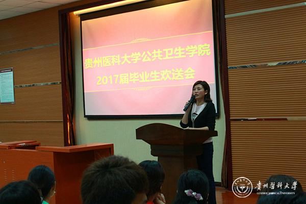 优秀毕业生代表邓艳同学(贵州省优秀大学毕业生)代表全体毕业生向悉心培养他们成长成才的母校、公共卫生学院和全体老师表示了由衷的感谢和崇高的敬意。同时,结合自己的大学学习生活经历,鼓励学弟学妹们要从树立自己的个人小目标开始,有计划地规划好自己的大学蓝图并付诸实践,争做优秀当代大学生;低年级学生代表周鹤向即将离校的学长学姐们致以无尽感谢和祝福,并承诺将以学长学姐们为学习的榜样、争做榜样、成为榜样。低年级学生岳明曦为即将离校的学长学姐们吉他弹唱一首《再见》,诉说惜别之情。