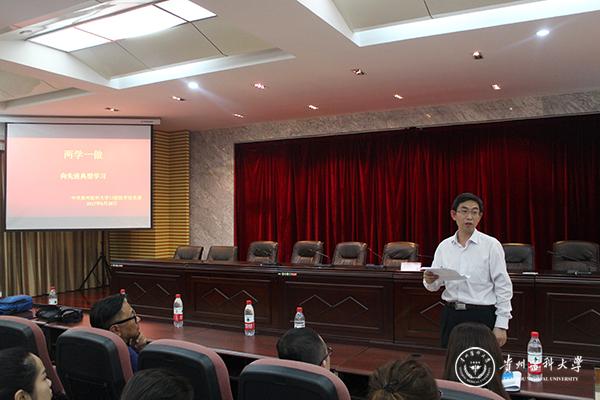 杨琴汇报了近日来党建工作情况并传达了通知精神。教工党支部书记刘洪静带领大家重温入党誓词,牢记党的宗旨。