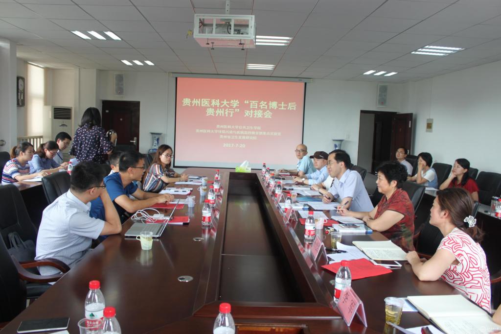 7月20日,公共卫生学院在南校区博雅楼二楼会议室举行“海内外百名博士后贵州行”对接会,校党委副书记战勇出席会议,来自清华大学、中国科学院、电子科技大学的4名博士后、博士生导师以及校人事处处长潘丽芬;环境污染与疾病控制重点实验室主任张爱华,副主任李军;公共卫生学院党委书记杨光红、院长洪峰、党委副书记何江及各学科专业负责人参加会议。会议由杨光红主持。