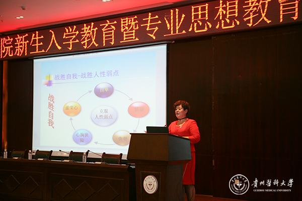 护理学院党委书记兼院长贾秀英为新生作了主题为《大学生活—用心开启你的智慧之旅》的讲座。贾秀英向新同学们介绍了大学的生活环境、学习环境、理想追求与中学的不同之处。她从适应大学生活的步骤、提高适应能力的建议、处理人际关心的技巧、战胜人性弱点的方法等方面介绍经验,以帮助新生树立正确的理想信念,养成良好的行为规范,更好地适应大学生活。