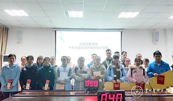 为学习宣传贯彻党的十九大精神,引领和带动广大青年学生学习党的十九大精神,坚定理想信念,树立正确的世界观、人生观、价值观,成为积极传播者和模范践行者、成为勇于担当的社会主义合格建设者。公共卫生学院分团委于11月21日在公共卫生学院二楼多功能报告厅举办了党的十九大精神知识竞赛。共有各年级团支部推荐的10支参赛队参加竞赛。