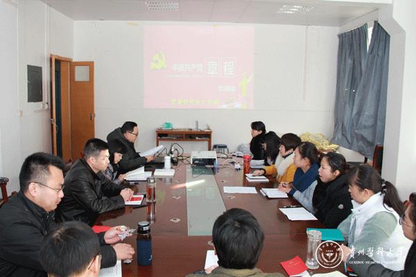 12月20日,党委研究生工作部组织教工支部在北校区研究生院三楼会议室集中学习新党章,教工支部全体党员及入党积极分子参加,学习由党委研究生工作部副部长余资江主持。
