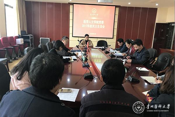 3月15日,医学人文学院党委在善思楼4楼会议室召开2017年度党员领导干部民主生活会。校督导组组长、党委统战部部长彭安辉,督导组联络员、党委统战部综合办副主任张娜到会督导。会议由医学人文学院党委副书记(主持工作)徐贵荣主持,医学人文学院领导班子成员,全院副科以上党员干部参加会议。