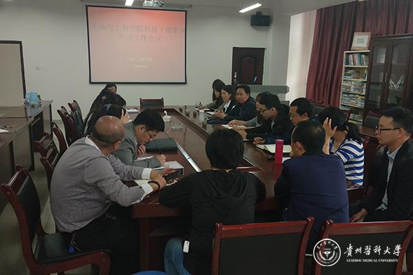 4月23日,在南校区厚德楼五楼会议室,生物与工程学院党委书记封韬对学院教研室副主任以上干部进行廉政约谈,学院班子成员余资江、郑维薇、刘红美、罗松、学院纪检委员列席本次会议。