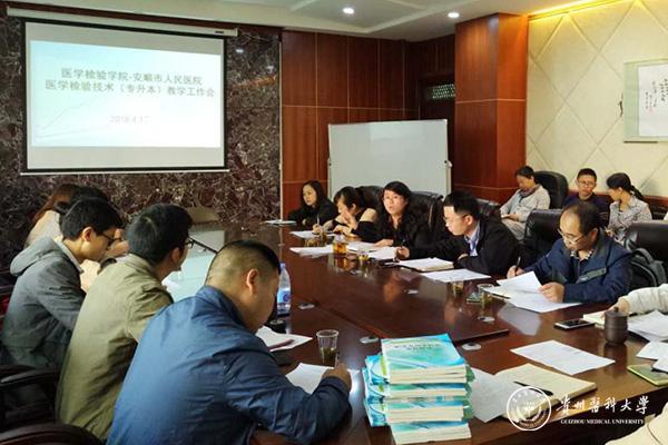 安顺市人民医院(beat365非直属附属安顺中心医院)承担beat365医学检验技术专业(专升本)整班制教学任务,包括理论教学和实习教学。为此,beat365国家级教学团队——“医学检验教学团队”,积极开展教学能力建设相关系列活动,指导、帮助、督促安顺市人民医院加强教学软硬件建设,为承接教学任务做好充分准备。