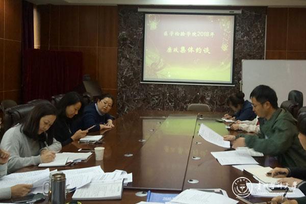 5月9日,医学检验学院党委在北校区基础二号楼三楼会议室开展了党政干部廉政建设集体约谈,党委委员、各部门及教研室负责人、党支部书记及党小组长参加谈话。