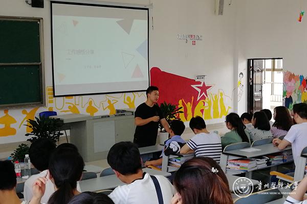 王贵旭以“奔赴基层一线,绽放青春梦想”为题做分享交流,内容主要分为三部分,第一部分自我剖析,做到认识自己,定位目标,思求真务实,力争上游;第二部分讲解“第一书记”的内涵,在基层工作中的作用和意义;第三部分结合自身工作经历,与同学们分享了自己在大方县理化苗族彝族乡营盘村担任“第一书记”的感想,面对全新的基层扶贫工作坚持“多学习,多接触,多思考,多实践”,引进猕猴桃基地农业项目,发展民族乡彝族文化和芦笙艺术,不但在经济上致富,更要在精神上脱贫,传承民间文化。