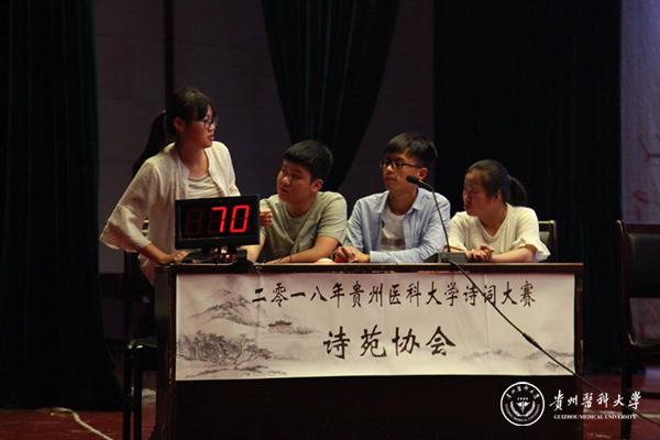 进入决赛的参赛队伍共有6支,他们分别来自诗苑协会、公共卫生学院、基础医学院、生物与工程学院、医学影像学院和药学院。本次比赛共有四个环节,分别是“贵医校史”“诗词上下句”“文学知识抢答”和“飞花令”。比赛开始,同学们对校史知识对答如流,体现了贵医学子对母校浓浓爱意,台下同学也喝彩声连连。在前两个环节中,六支队伍不分伯仲,互相追赶。在第三环节中差距逐步凸显,大家都变得更为认真和谨慎。最后一个环节“飞花令”达到了本次比赛的高潮,有的组抽到难一点的题目,刚开始还能流畅作答,攻破了几支队伍之后,磕磕巴巴不能流畅作答时,整个会场都特别安静,所有人都屏住呼吸,为他们捏一把汗,当选手作答完毕,全场便又响起阵阵热烈的掌声和欢呼声。经过四个环节的精彩角逐,医学影像学院以270分的成绩夺得一等奖。
