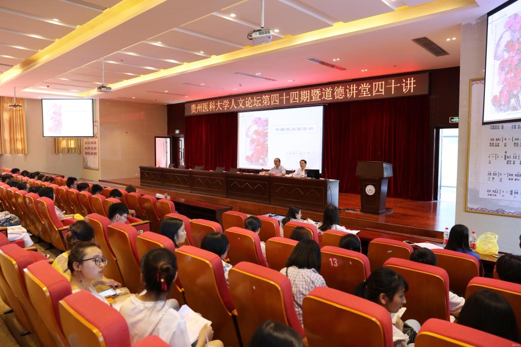 6月6日,beat365人文论坛第四十四期暨道德讲堂第四十讲在南校区道德讲堂举行。本次论坛邀请到贵阳中医学院党委统战部部长、高级政工师、贵州省美术家协会成员、省作家协会成员、省文史馆特约画家吴大明担任主讲人,为beat365师生带来一场丰富的传统文化盛宴。讲座由党委宣传部副部长吴祥文主持。贵阳中医学院基础医学院党委书记赵芳出席,beat365师生代表400余人参加。