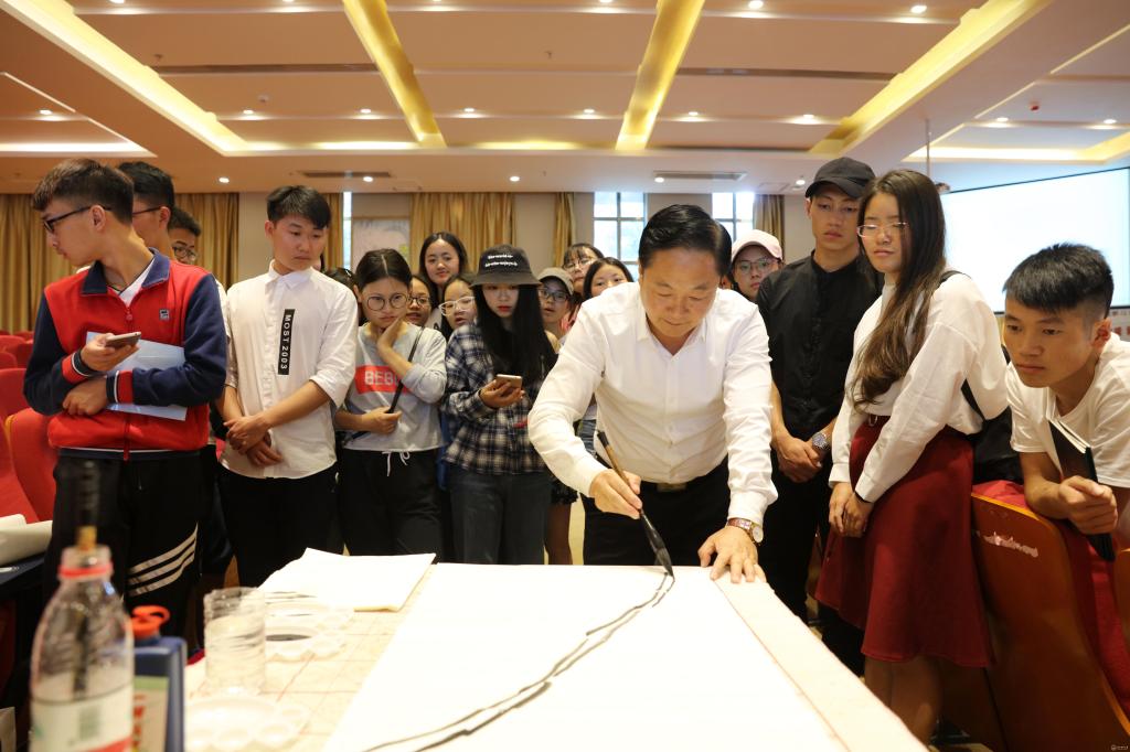 吴大明以《中国画(花鸟)艺术赏析》为题,讲解了中国绘画的产生、中国绘画的分类(人物、山水、花鸟)、中国名画鉴赏等方面的内容。讲到国画和西画的区别和联系,他用大家熟悉的中医和西医类比进行讲解,让同学们更加深刻地理解了“国画写意,西画写实”的含义,也理解到两者之间的紧密联系;他对《清明上河图》、《百骏图》、《蛙声十里出山泉》等中国名画作细致讲解和赏析,让同学们感受到国画独特的魅力及丰富的内涵;随后,他展示了自己历年的著作,并分享了多年作画的经验和技巧。
