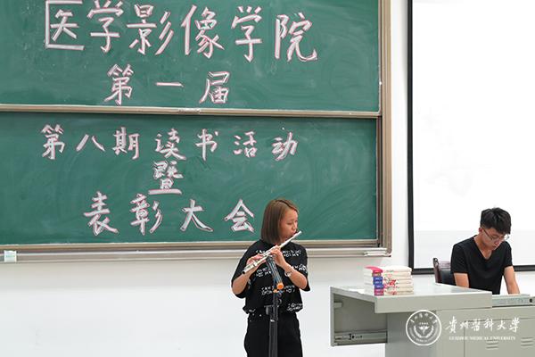 活动共分为“青春之我,畅游书海”、“奋斗之我,圆梦贵医”、“担当之我,助力中国”三个篇章,同学们以丰富多彩的形式畅谈读书乐趣,分享读书心得,并献上了精彩的歌曲演唱,笛子演奏《星月神话》、诗朗诵《祖国啊,我亲爱的祖国》等。其中,以beat365八十华诞系列活动剪辑为背景,由学生原创《庆贵医八十华诞》诗词朗诵将活动推向了高潮,充分展了影像学子心系母校、情系国家的感恩情怀和爱国情怀。