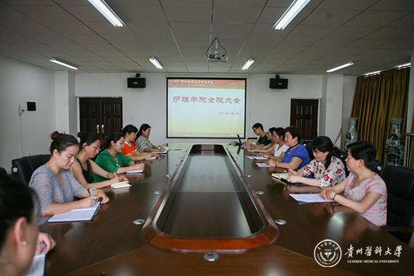 7月4日,护理学院在百川楼会议室召开全院工作会议,部署近期工作,院长贾秀英主持会议。
