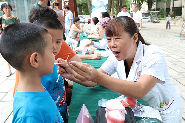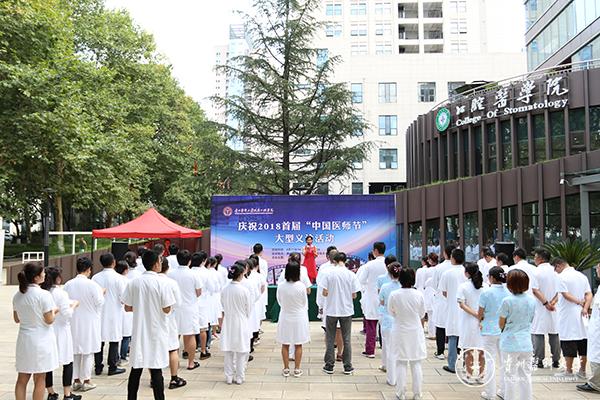 8月17日上午,为庆祝首届中国医师节,大力弘扬敬佑生命、救死扶伤、甘于奉献、大爱无疆的崇高精神,彰显大医精诚、医者仁心的精神风貌,不断提升医院影响力、吸引力、凝聚力和感召力,着力营造尊医重卫的医疗环境,构建和谐医患关系,更好地为人民健康服务,由beat365附属口腔医院举办的首届中国医师节大型义诊活动在医院前广场举行。