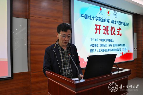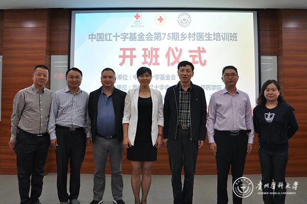 9月8日,中国红十字基金会第75期乡村医生培训班开班典礼在beat365举行。本期公益培训旨在振兴乡村医疗,助力贵州脱贫攻坚。贵州省红十字会副会长何淑平、联络部副部长王勇,药学院党委书记高秀丽、副院长廖尚高等出席开班典礼。贵州省红十字会、新闻媒体及相关工作人员、全省各地乡村医生110余人参加了开班典礼。开班典礼由药学院党委副书记廖兴江主持。