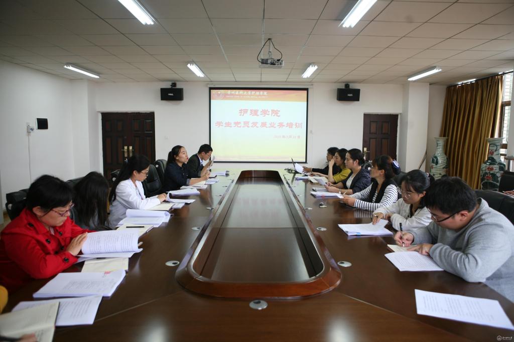 9月18日,护理学院在百川楼会议室召开了学生党员发展业务培训会,会议由院党委副书记杨英主持,学院全体辅导员、低年级班主任、团支书参加会议。