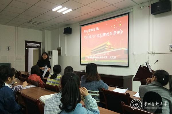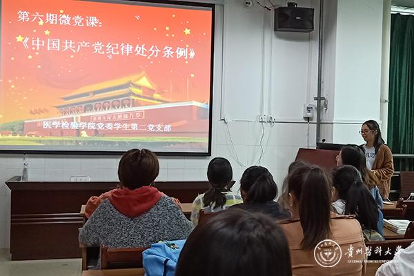 10月22日,医学检验学院党委学生党支部在医学检验学院四楼学习室开展了第六期微党课活动,组织学生党支部全体党员和预备党员学习《中国共产党纪律处分条例》,学院党委书记蒋红梅参加了学习。