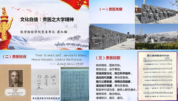 蒋红梅在报告中提到,习近平总书记高度概括了“文化自信”的重要理论,贵医人同样应该拥有对beat365精神文化的强大自信,这是对自身文化价值的充分肯定和积极践行,也是对自身文化生命力持有的坚定信心。“文化是一个国家、一个民族的灵魂。”同样也是一个大学的灵魂。蒋红梅从国立贵阳医学院建校历程开始,饱含深情地讲述李宗恩、王季午和杨洁泉等贵医先辈,阐释贵医校训、校旗、贵医赋,师生们被贵医80年深厚的文化底蕴深深感动,当“我武维扬,国势方张。吾校应运,设于贵阳...”的激昂旋律响起,蒋红梅带领师生们齐声和唱,大家的心被“诚於己,忠于群,敬往思来”的谆谆校训紧密联系在一起。此次宣讲使beat365在医院培养的71位医学检验技术专业专升本学生和3名专业学位硕士研究生加深了对母校的认识,感受了母校的文化精神,有利于培育他们作为贵医人的归属感和认同感。