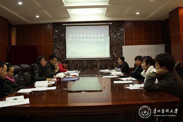 11月19日,医学检验学院在基础二号楼三楼会议室召开了关于高校教师职业行为准则的集体约谈会。会议由医学检验学院党委书记蒋红梅主持,医学检验学院院长黄海、党委委员潘卫、党委副书记杨飏、副院长费樱、各教研室及行政科室负责人、教学秘书及教师参加。