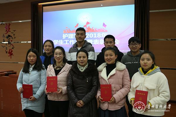 王秀红宣读2018年学生工作获奖名单,并向获奖者表示祝贺。护理学院的领导、老师为获奖的先进集体和个人颁发了荣誉证书,并与获奖者合影留念。