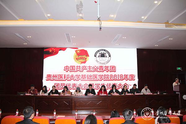 12月20日,基础医学院2018年度团员代表大会暨学生代表大会在道德讲堂召开。校团委副书记何为、基础医学院党委副书记王妤煜、基础医学院副处级组织员邓欣、兄弟院系分团委负责人及各年级团总支书记、辅导员老师、团员代表、学生代表、分团委学生会全体成员共300余人参加会议。会议由洪潇潇主持。