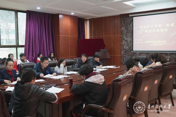 蒋红梅传达了学校党委第五次、第六次中心组学习的主要内容,再次组织大家学习全国、全省教育大会精神,她强调,教育是国之大计、党之大计,必须优先发展,这是基本战略,“九个坚持”深刻回答了“培养什么人、如何培养人、为谁培养人”这一根本问题。同时,要紧扣《贵州省推进教育现代化建设特色教育强省实施纲要(2018—2027年)》《关于切实加强全省教育系统党的建设工作的意见》《关于全面深化新时代教师队伍建设改革的实施意见》等重要文件精神,把立德树人放在第一位,加强教师队伍建设,把牢学校课堂作为思想政治工作和意识形态工作的主阵地,找准落实“举旗帜、聚民心、育新人、兴文化、展形象”使命任务的切入点和着力点,抓重点、补短板、强弱项,办好让人民满意的教育。