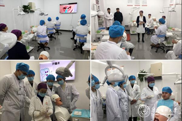 同时,附属口腔医院作为中华口腔医学会口腔专业护士临床实践培训基地和贵州省新入职口腔护士培训基地医院,口腔临床实训基地和护士培训基地的启用将对新入职护士、在职护士、进修护士、见习护士技能培训提供更加规范的教学场所,能够较好承担口腔护理四手操作、橡皮障技术、玻璃离子调拌技术等多项口腔护理专业教学工作,为规范我院临床护理教学管理工作,提高临床护理教学质量,促进临床与护理全方位培训工作扎实推进、稳健开展提供有力保障。