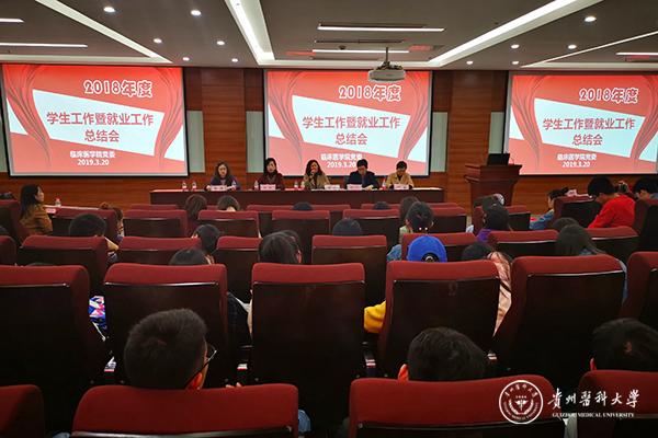 3月20日,临床医学院在临床技能中心207会议室召开2018年度学生工作暨就业工作总结会。学生处处长赵平,招生就业处副处长李季,资助管理中心副主任贲琛,临床医学院党委书记周红、副书记杨婕、副院长戚璐及各年级辅导员、获奖学生干部、学生代表等二百余人参加会议。总结会由学生科科长李莉主持。