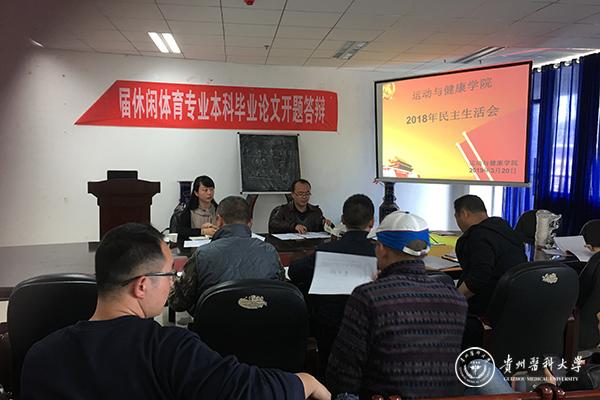 3月20日,运动与健康学院2018年度党员领导干部民主生活会在体育馆三楼会议室召开。督导组组长、党委宣传部副部长吴祥文,督导组成员刘冰荻到会指导,运动与健康学院党政班子成员、学院副科以上干部、教师代表、工会代表等参加会议。会议由运动与健康学院党委书记姚思勤主持。